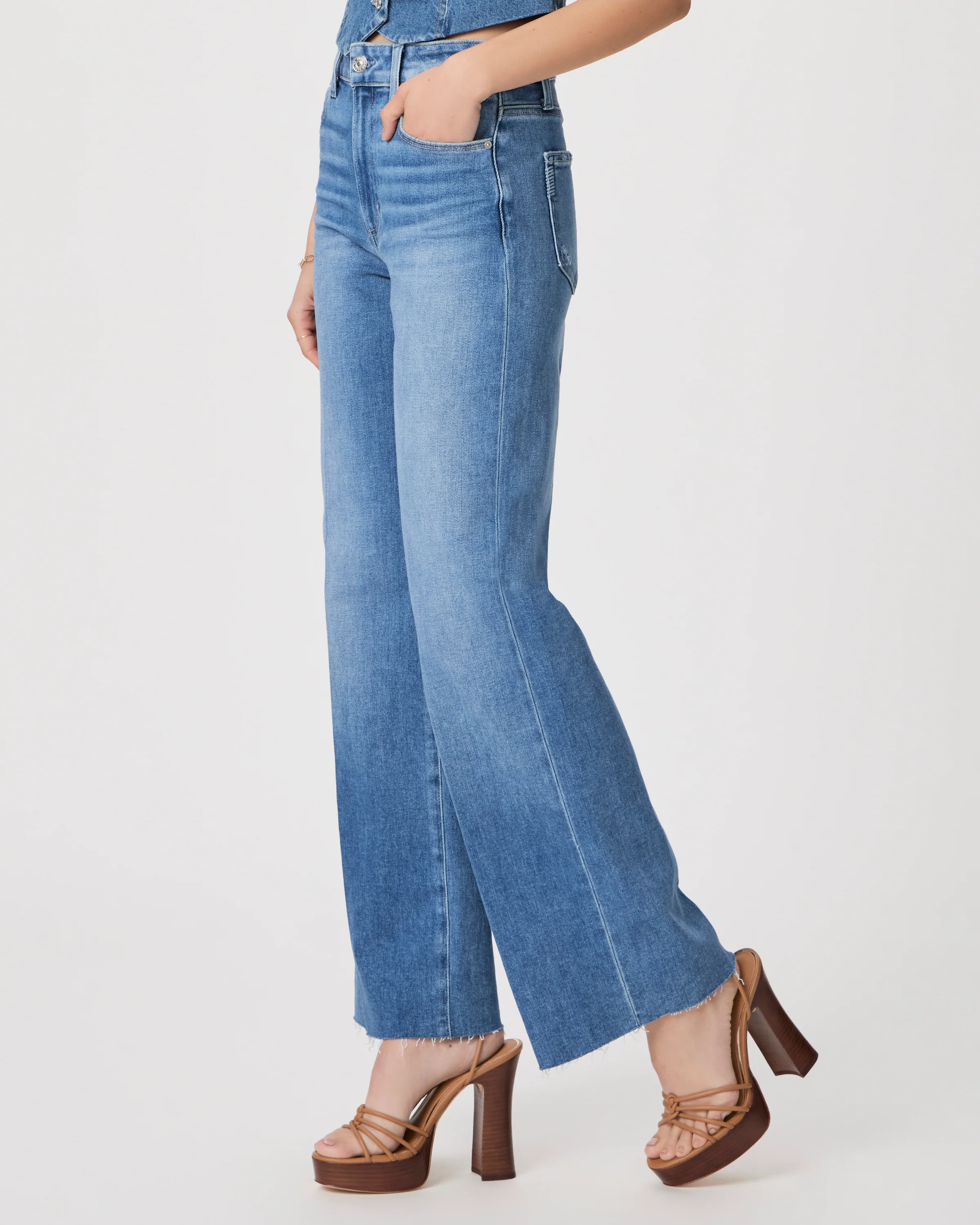 This high-rise wide leg has a slightly relaxed fit with a raw hem and a 31” inseam. Cut from TRANSCEND VINTAGE denim in the perfect blue wash with natural fading, this pair combines the signature comfort of Transcend with rich denim character for a lived-in look.