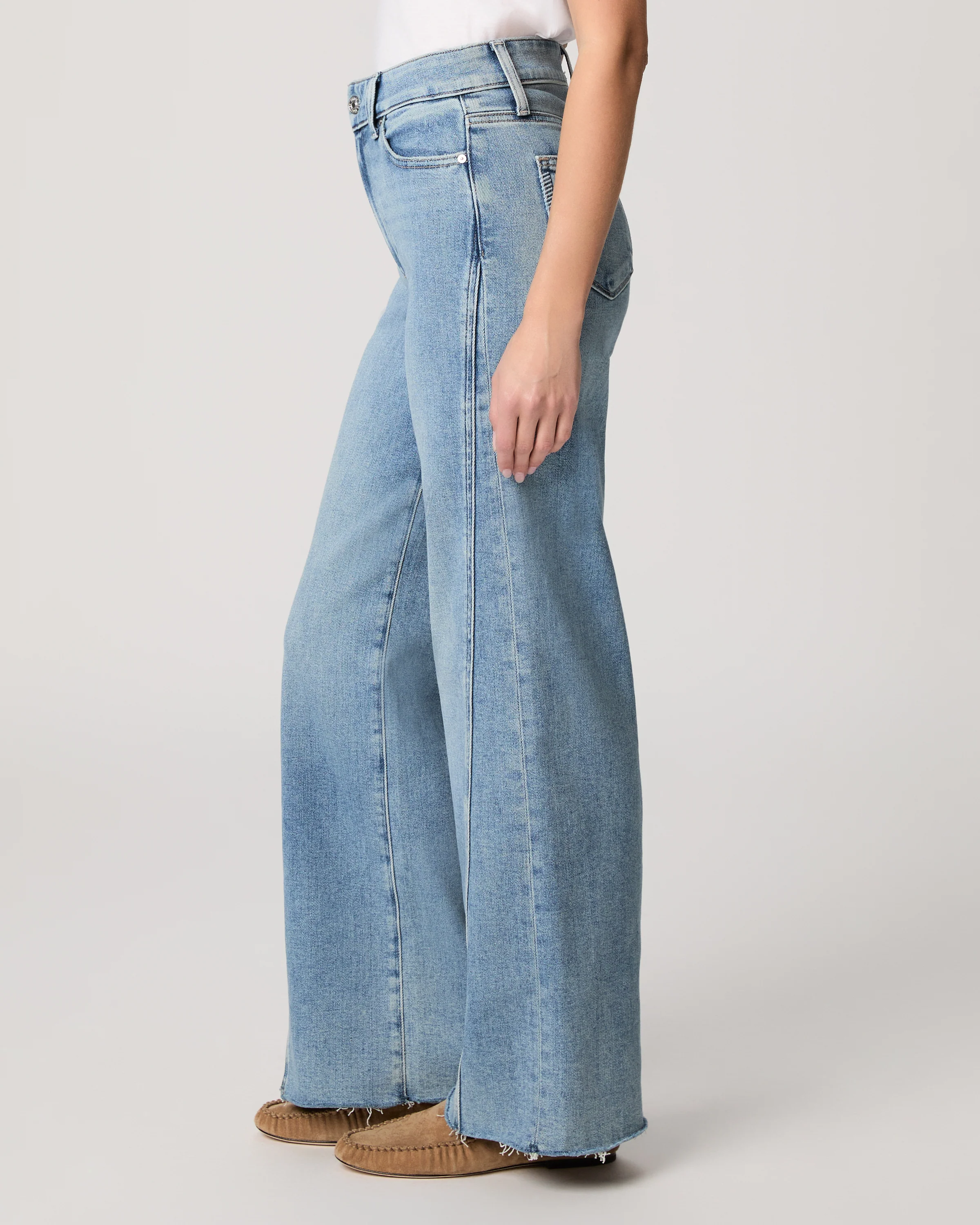 Anessa is our high-waisted wide leg with a slightly relaxed fit and an ankle length inseam. Cut from TRANSCEND VINTAGE denim in a light wash with twisted outseam panels and a raw hem, this pair combines the signature comfort of Transcend with rich denim character for a lived-in look.