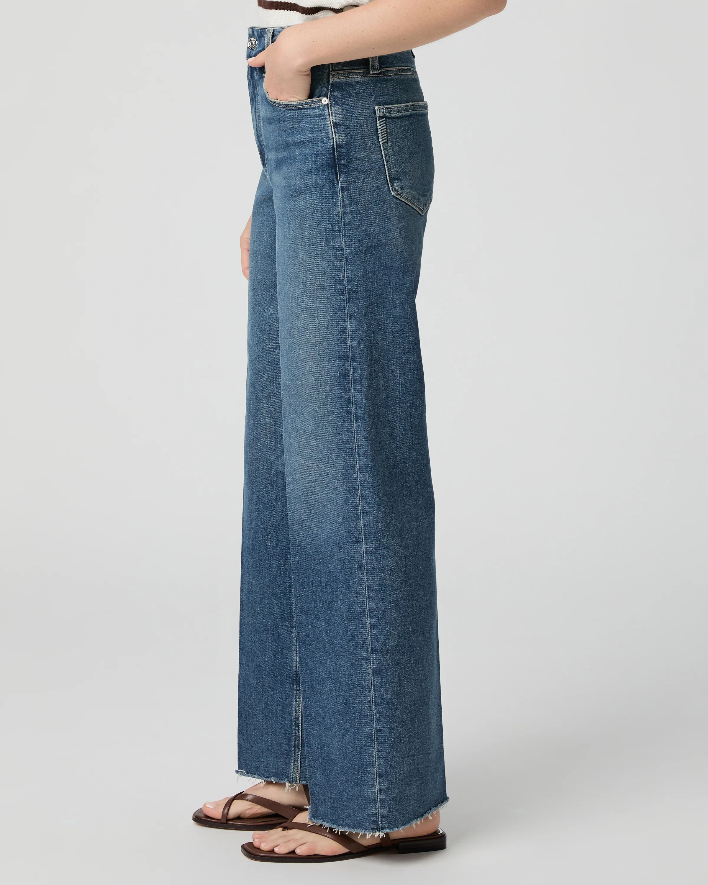 Anessa is our modern high-rise wide leg silhouette with a slightly relaxed fit and 31” inseam. Cut from our TRANSCEND VINTAGE denim in a dark indigo wash with vintage character and a raw hem, this pair has the look of authentic vintage denim but is incredibly comfortable with plenty of stretch and recovery.