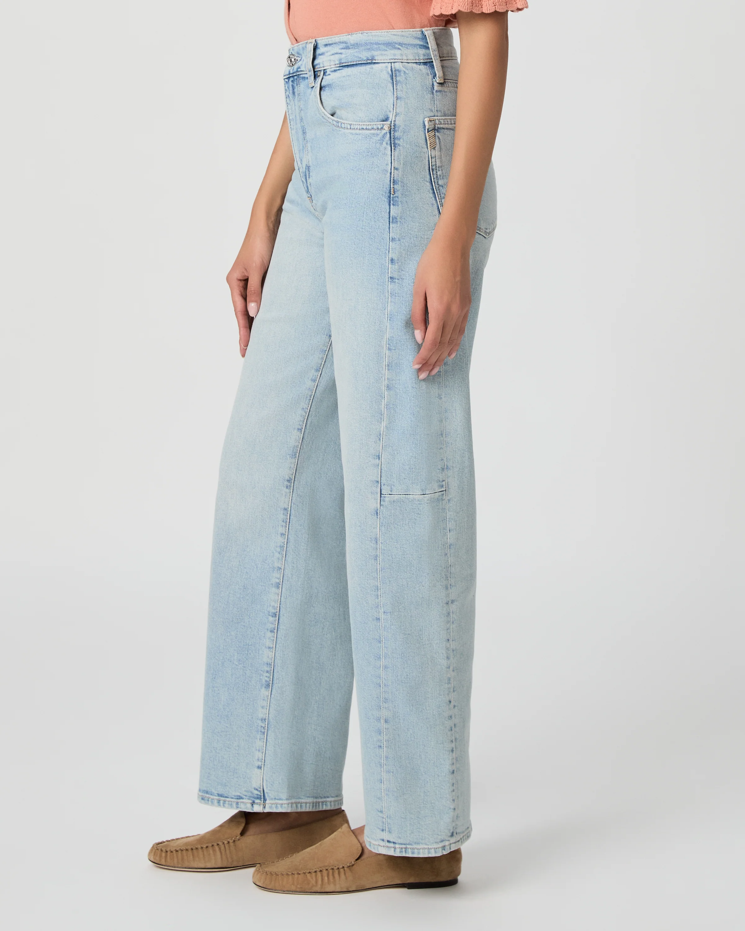 The Arellia Skimmer is our high-rise barrel-leg silhouette designed to graze the top of the foot. Crafted from heritage-inspired denim in a light vintage wash, it offers a soft hand-feel with a hint of stretch and is finished with outseam panels for a fresh update to everyday denim.