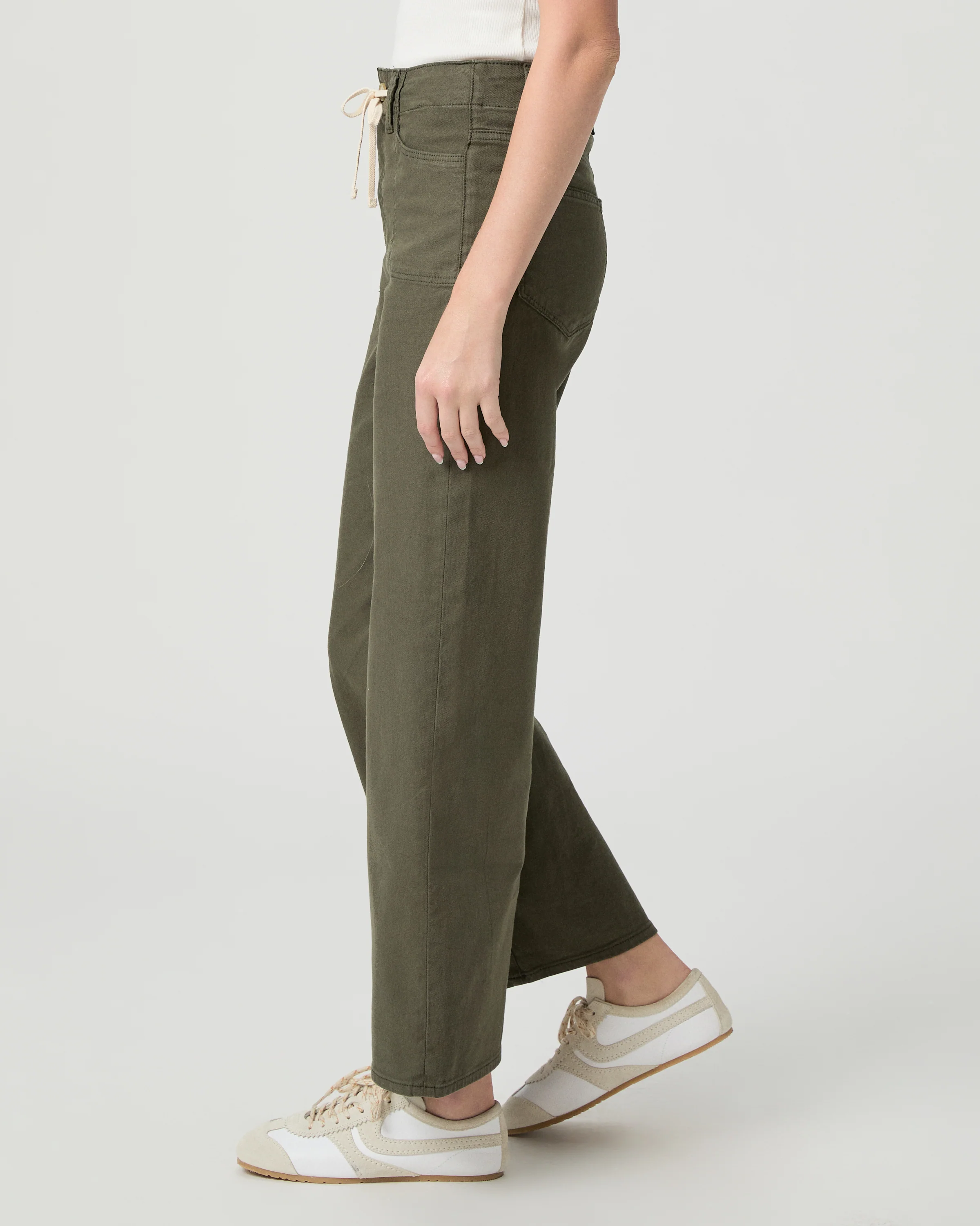 Ari is our modern high rise, wide leg weekender pant with a lightweight, relaxed fit and an ankle-length inseam. Crafted from super soft denim, this pair comes in a vintage-inspired dark forest green with utility pockets and a waistband tie.