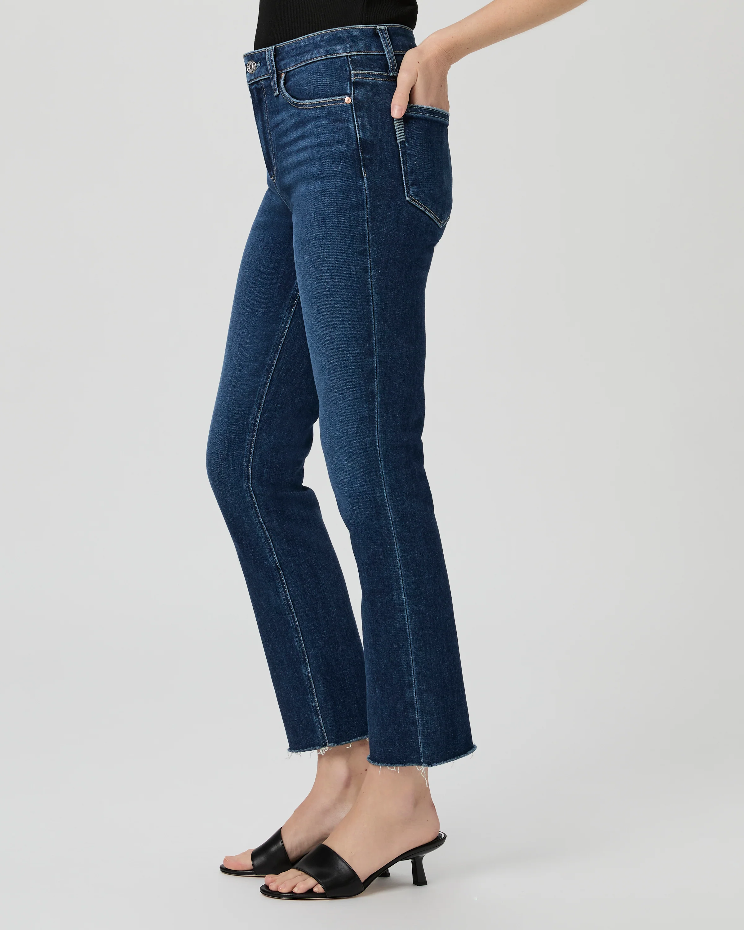 This high-rise slim jean is lean through the leg and finishes at the ankle with a raw hem. Cut from TRANSCEND VINTAGE denim in a rich dark wash with natural fading, this pair combines the signature comfort of Transcend with rich denim character for a lived-in look.